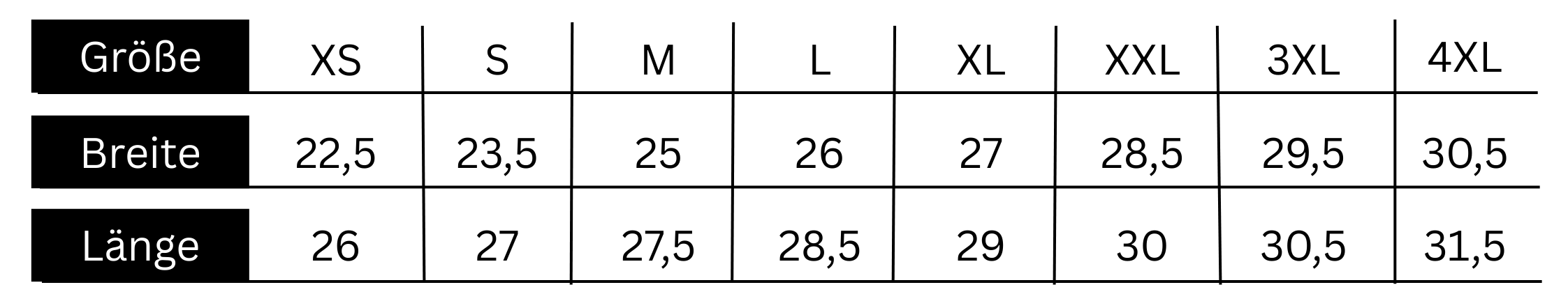 Größentabelle